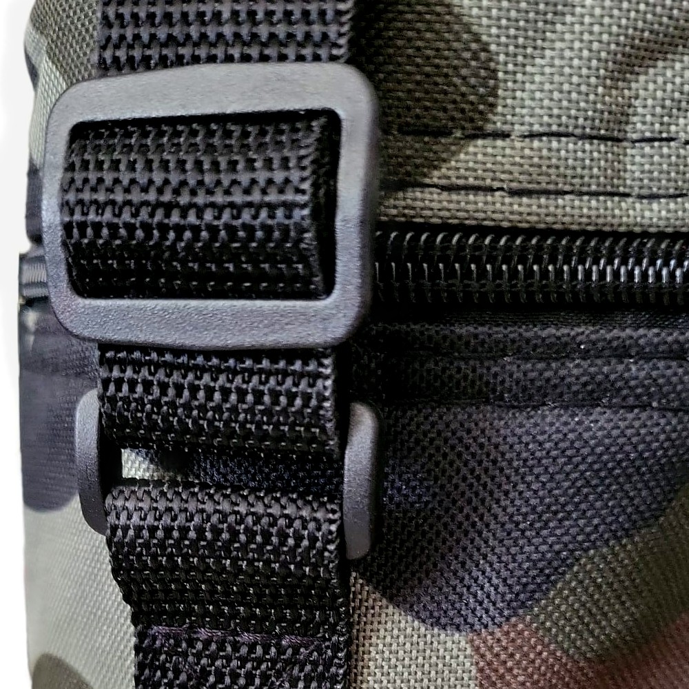 La borsetta è di colore verde fantasia militare dotata di una chiusura a cerniera cosi da chiedere in modo
