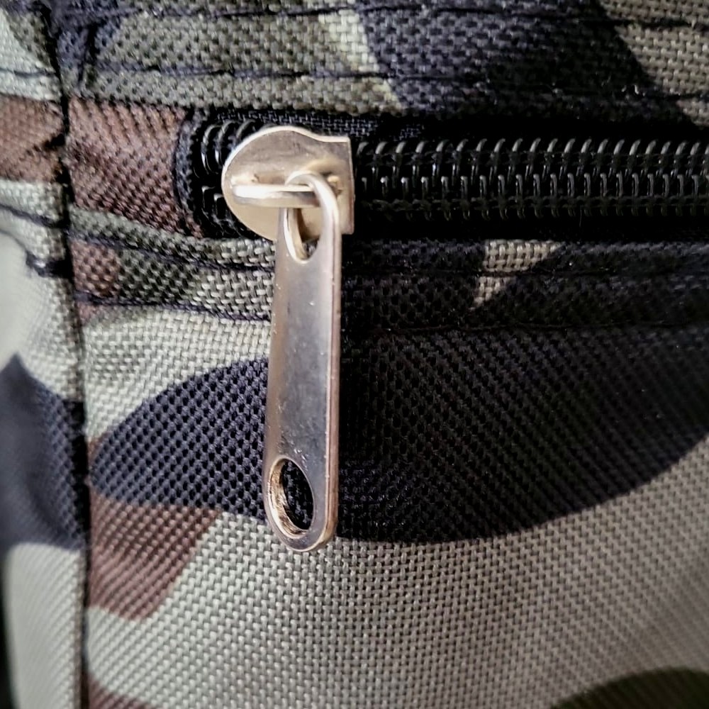 La borsetta è di colore verde fantasia militare dotata di una chiusura a cerniera cosi da chiedere in modo