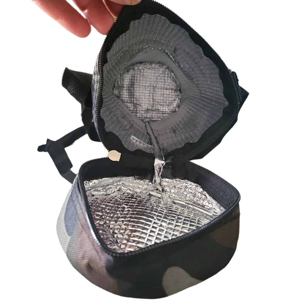 infatti il suo interno è in alluminio riflettente cosi da tenere al fresco oppure a caldo fino a 6-8 ore.