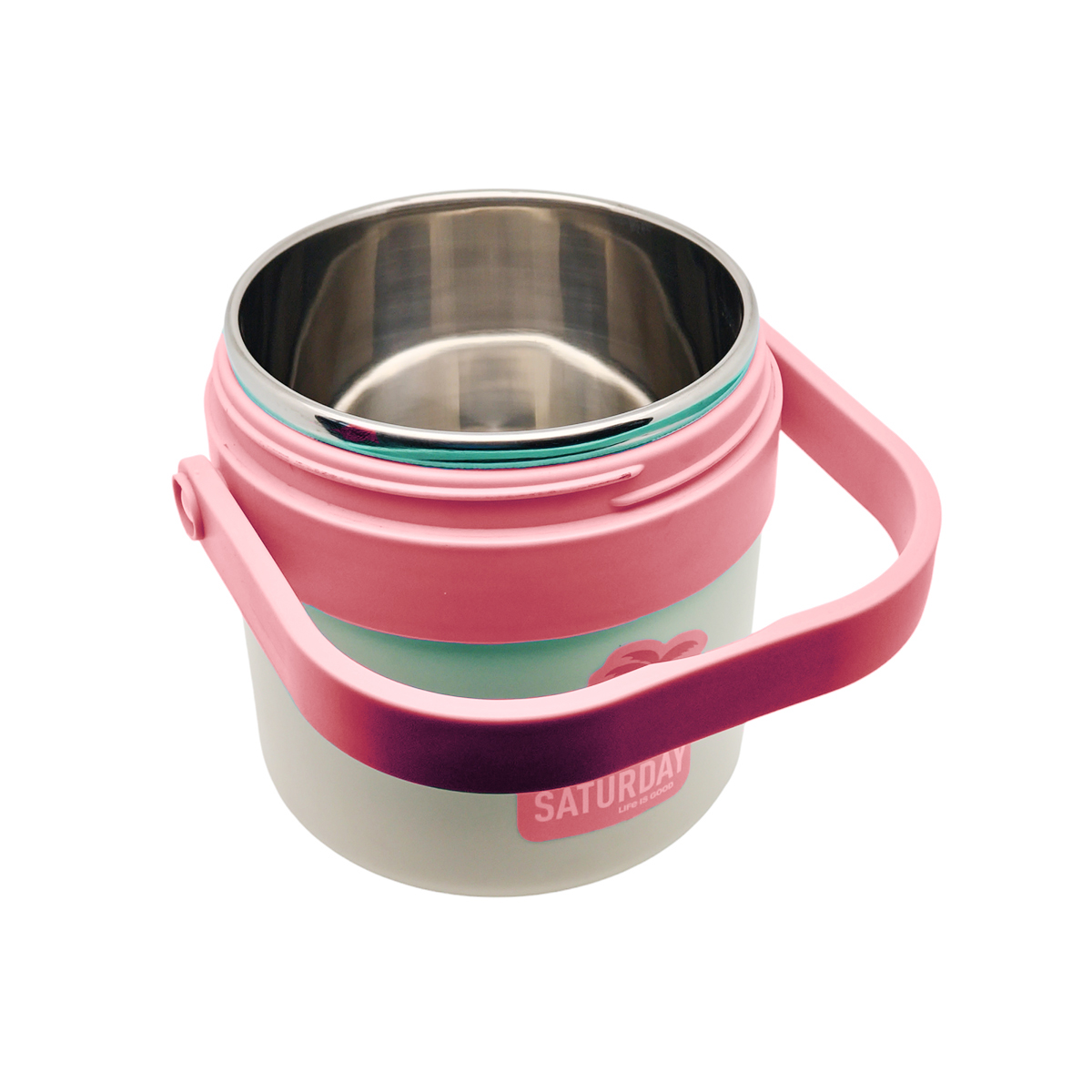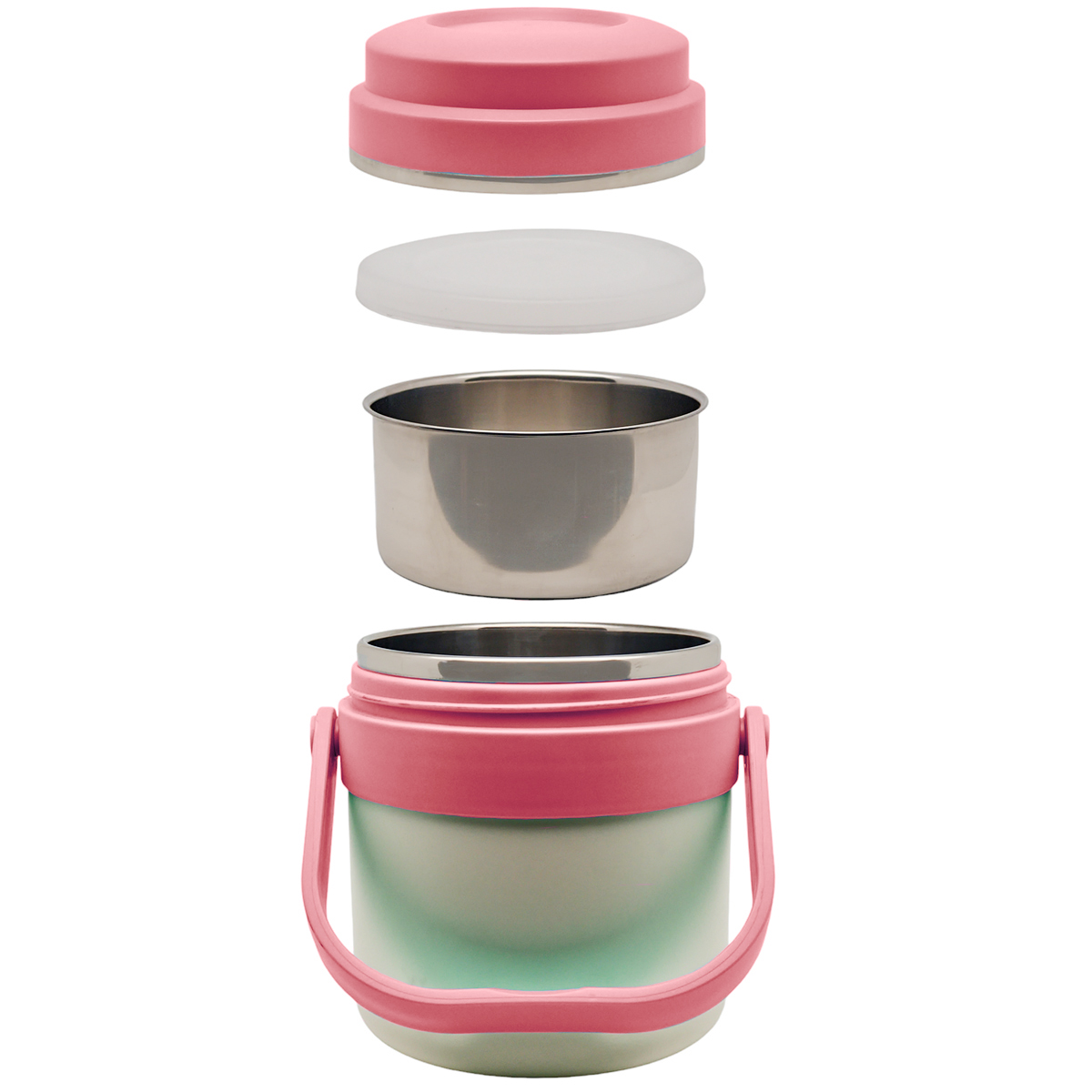 Comodissimo thermos di colore rosa, per alimenti e bevande in acciaio inox 18/8 leggero e resistente, struttura in plastica ABS e senza BPA, offrendoti cibo sano ogni giorno.