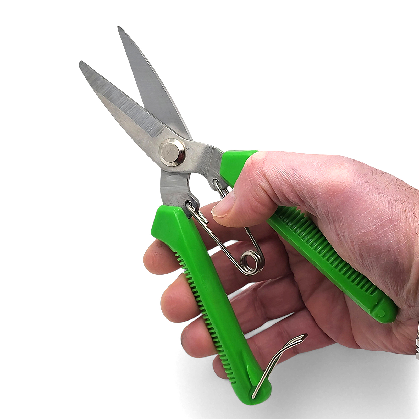 L’impugnatura ergonomica antiscivolo riduce l’affaticamento, mentre la molla di ritorno e la chiusura di sicurezza assicurano comfort e praticità durante l’uso.