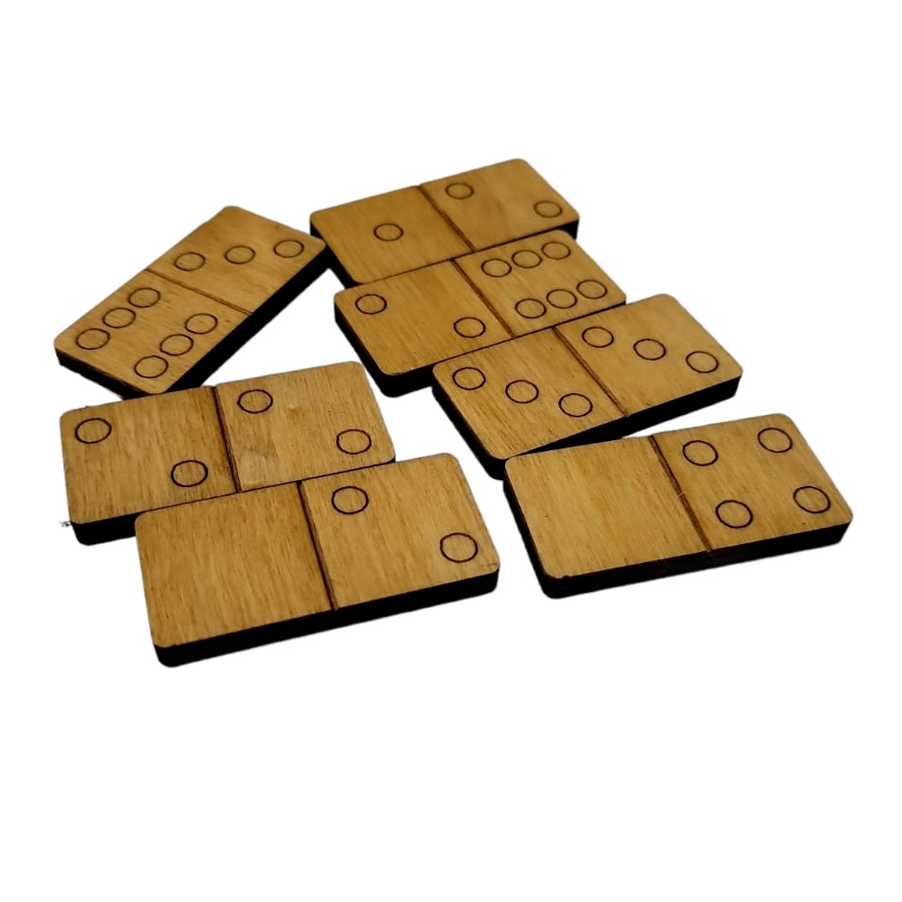 Le 28 tessere in legno hanno una misura di 40 x 20 mm con uno spessore di 4 mm.