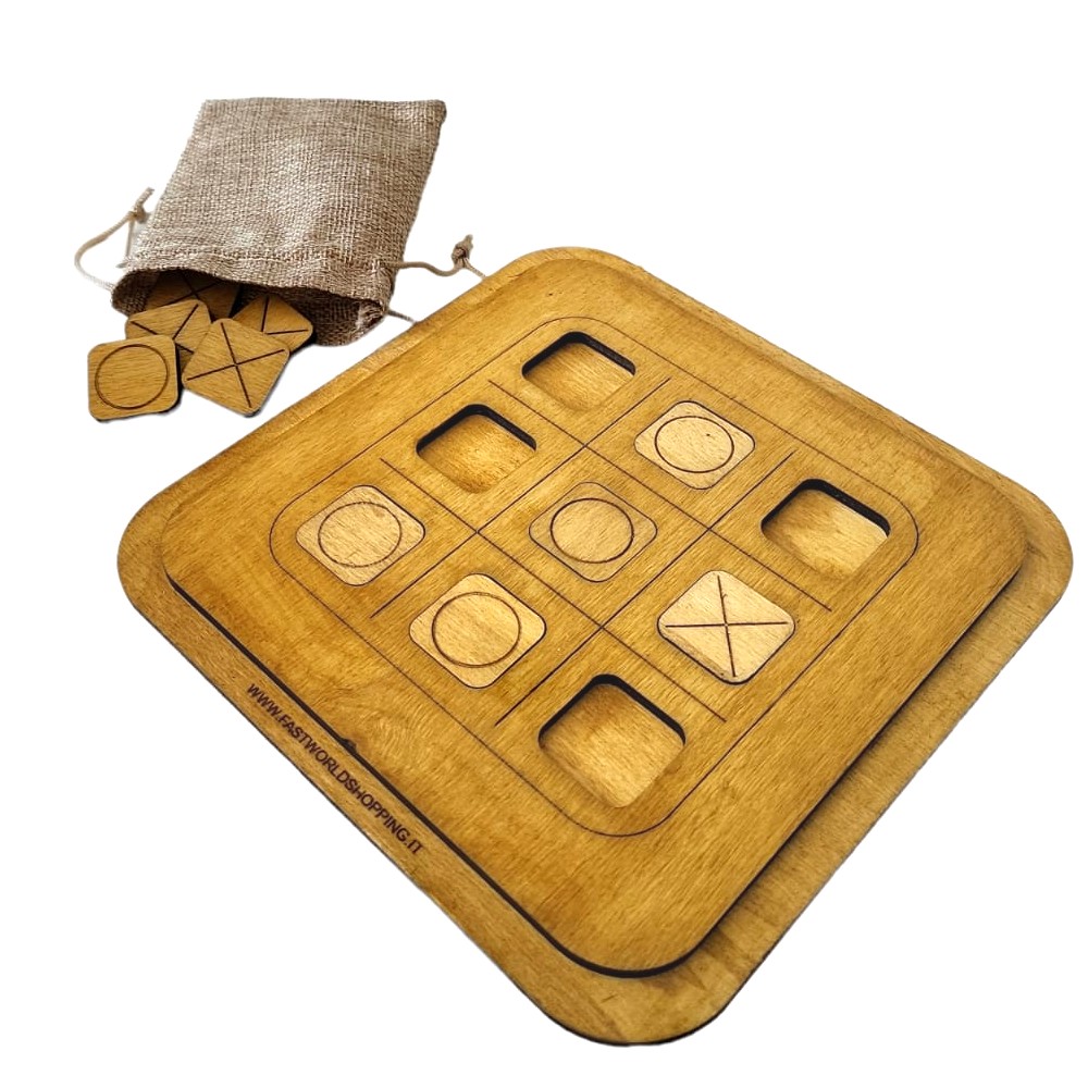 GIOCO SOCIETA TRIS IN LEGNO 10 TESSERE GIOCATTOLO 2 GIOCATORI SACCHETTINO IUTA