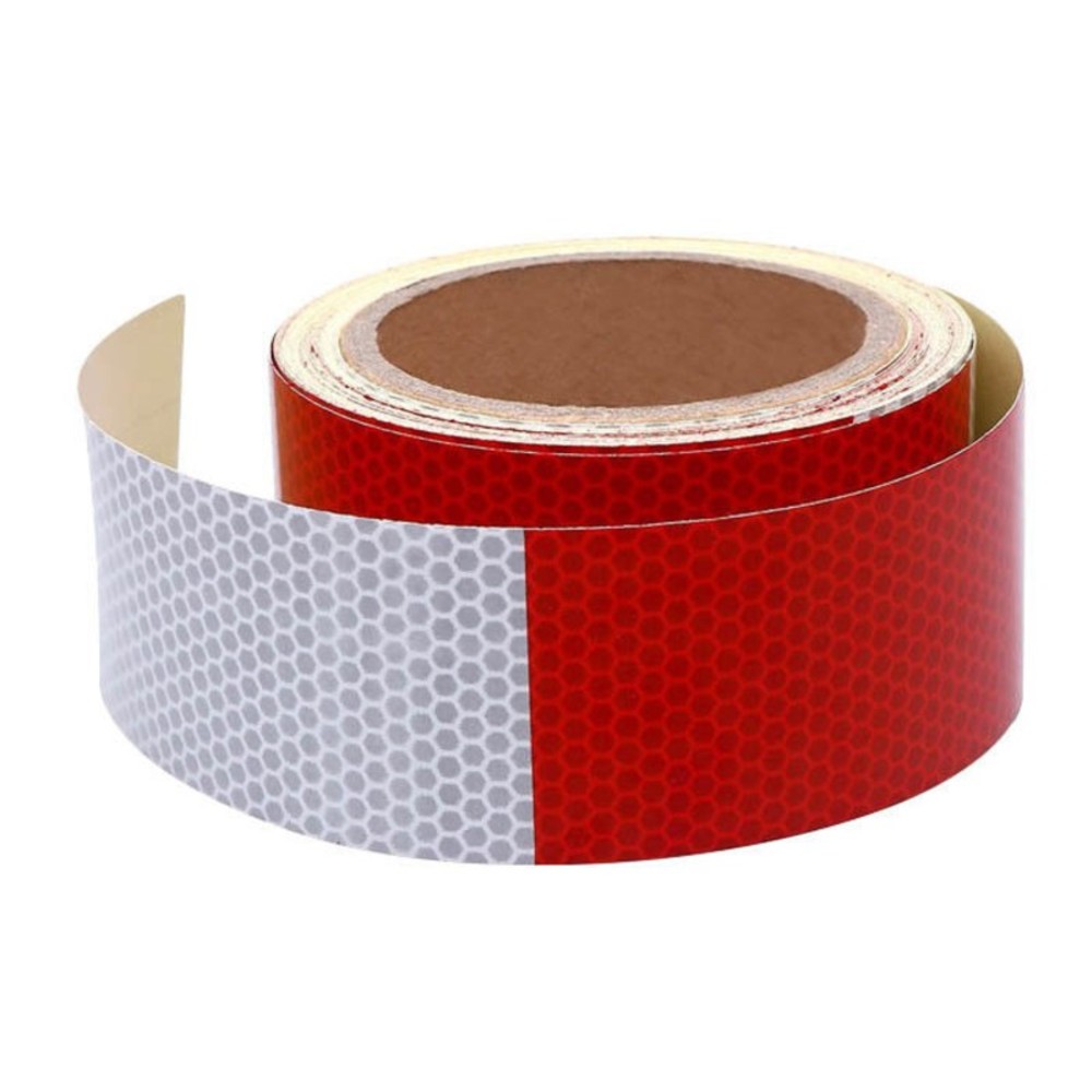 Nastro adesivo retro riflettente Colore bianco / rosso catarifrangente Metri 25 Larghezza nastro 5 cm.