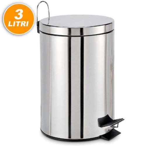 La pattumiera a pedale in acciaio inox con capacità di 3 litri è ideale da usare in bagno o in cucina. La pattumiera esternamente misura 27 cm di altezza e ha un diametro di 16 centimetri. Mentre il secchio interno misura 18,5 cm x 14 cm La superficie è in acciaio inox ed è facile da pulire con un design classico.
