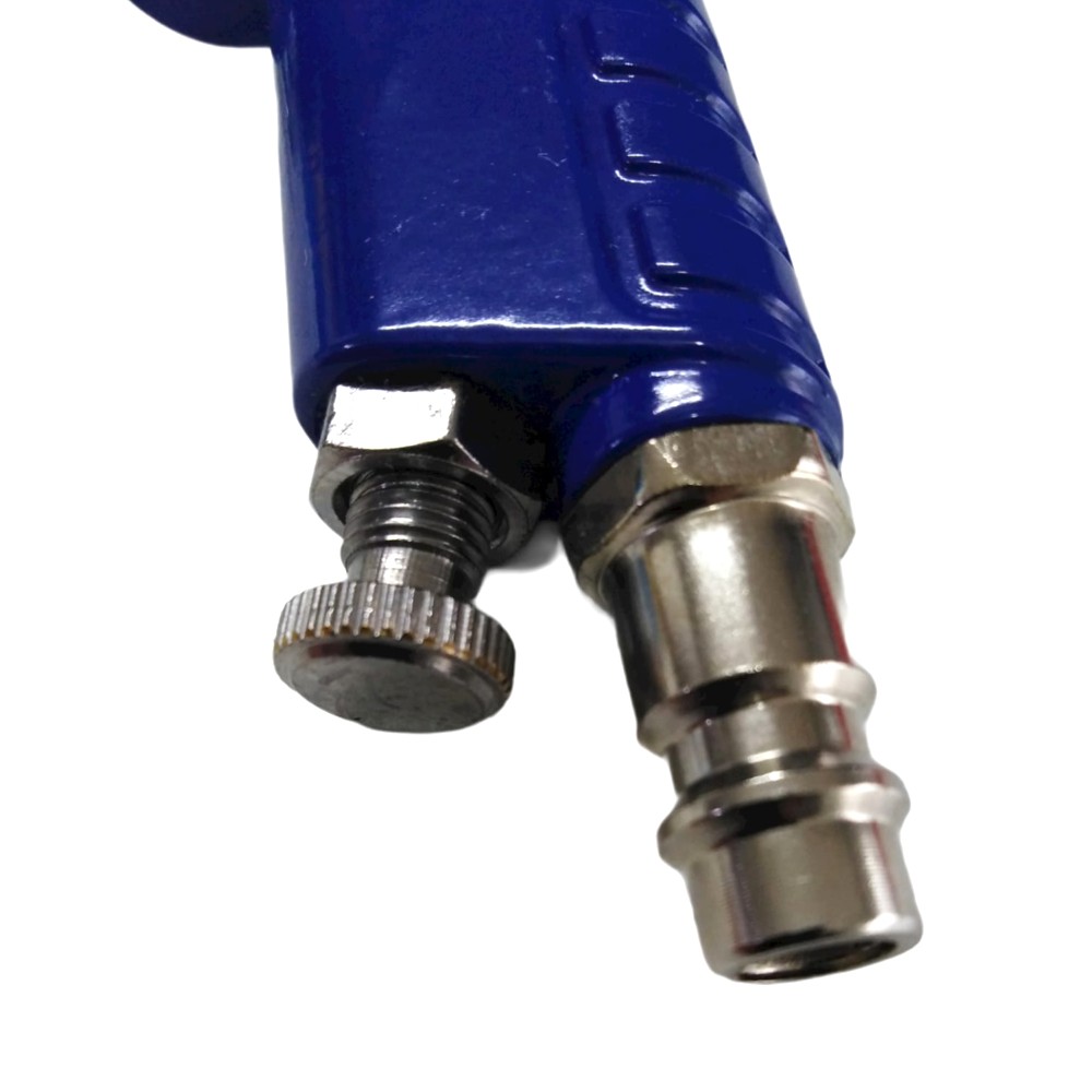 Pressione di ingresso 3-4 bar Consumo d'aria 80-150 l / min Attacco aria compressa 1/4 Ugello in acciaio inox 0,8 mm. Valvola di regolazione per il passaggio dell'aria Bicchiere di plastica con tappo a vite 100 ml Raccordo aria compressa rapido