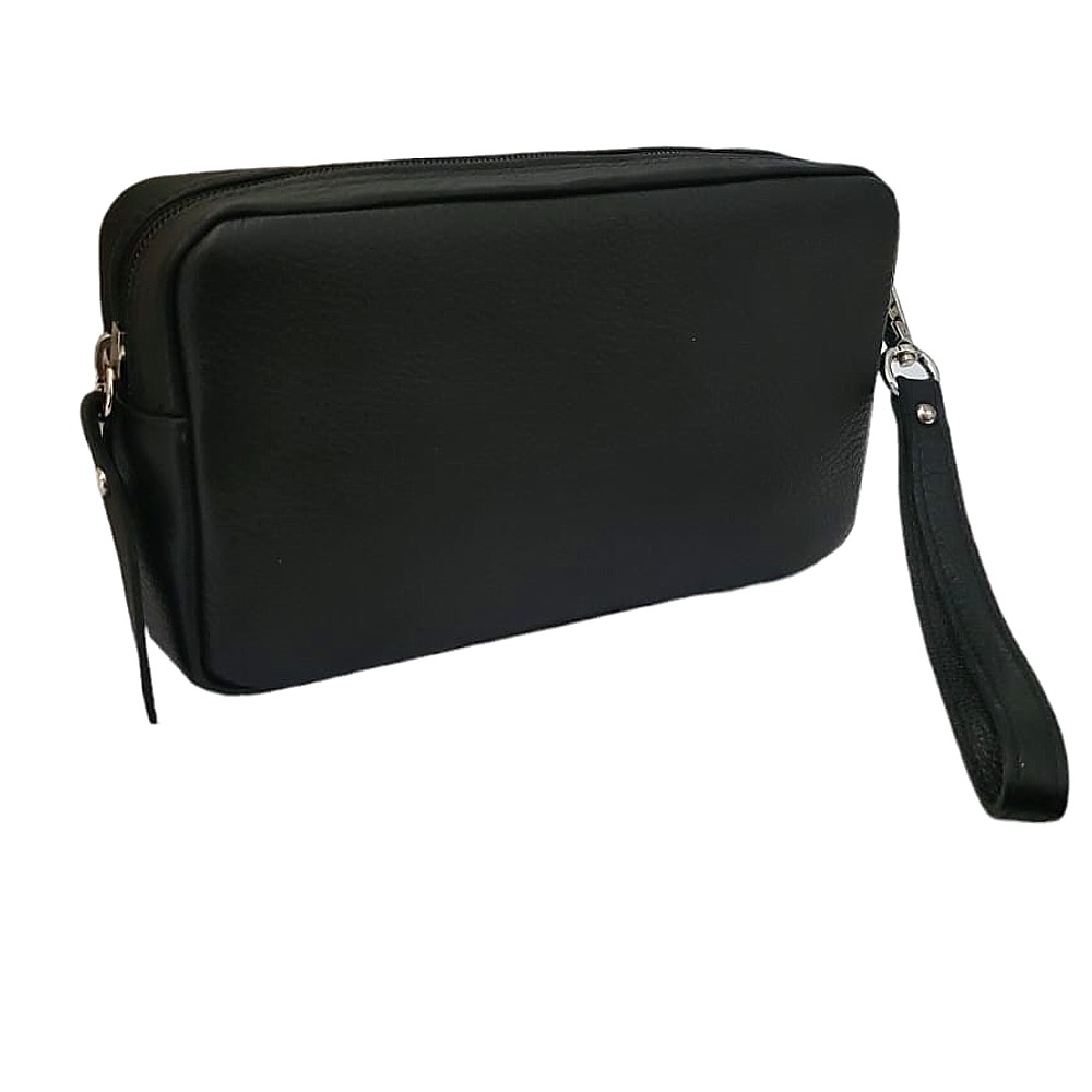 Comodissimo borsello di colore nero dotato di manico da polso