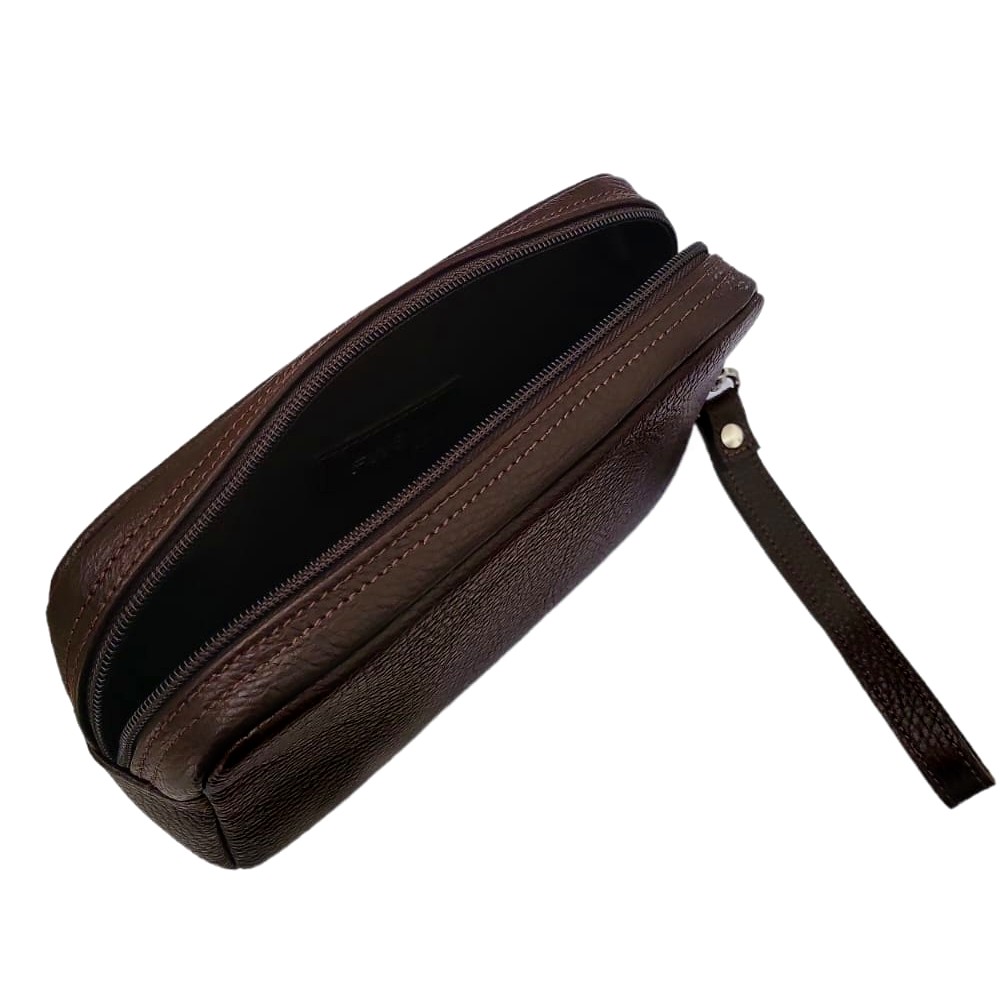 Pochette Uomo Borsello in Vera Pelle con Maniglia da Polso e Cinturino Removibile Realizzato da Artigiani Italiani con Materiali di Alta Qualita Design Elegante e Raffinato Made in Italy Colore Marrone