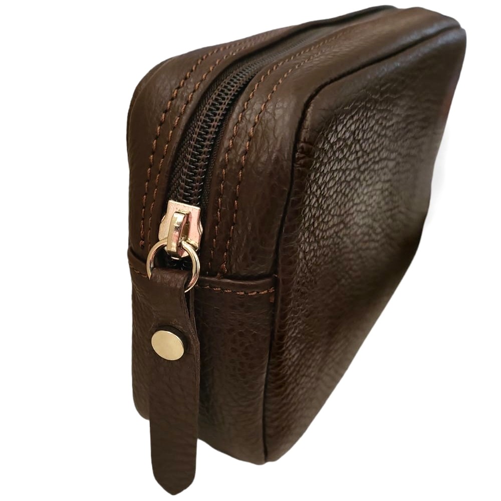 Pochette Uomo Borsello in Vera Pelle con Maniglia da Polso e Cinturino Removibile Realizzato da Artigiani Italiani con Materiali di Alta Qualita Design Elegante e Raffinato Made in Italy Colore Marrone