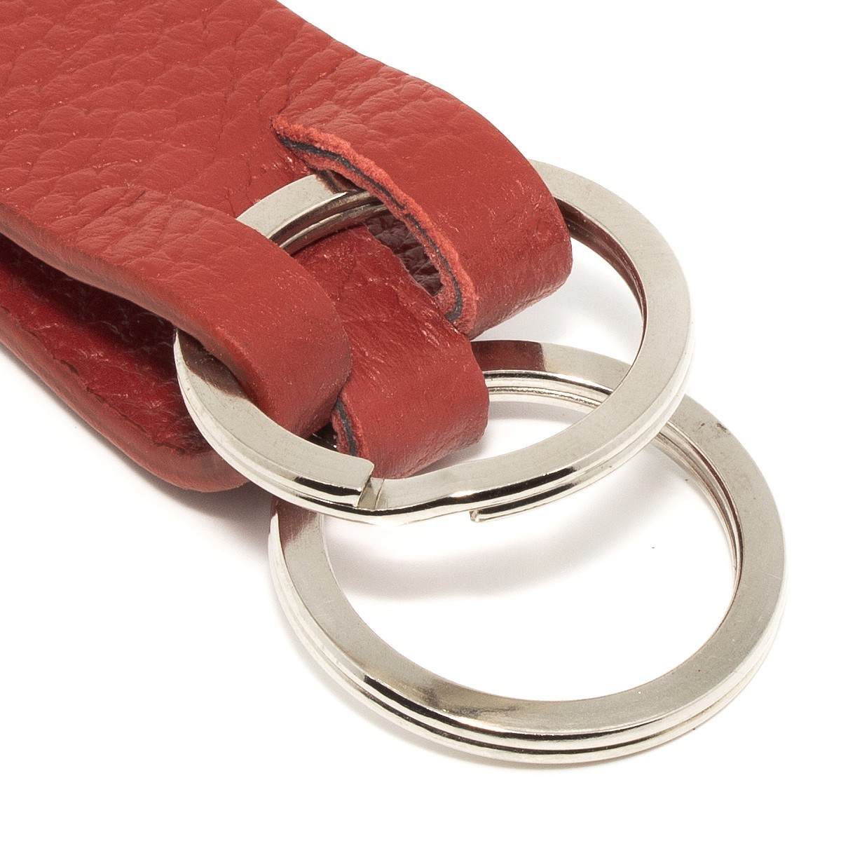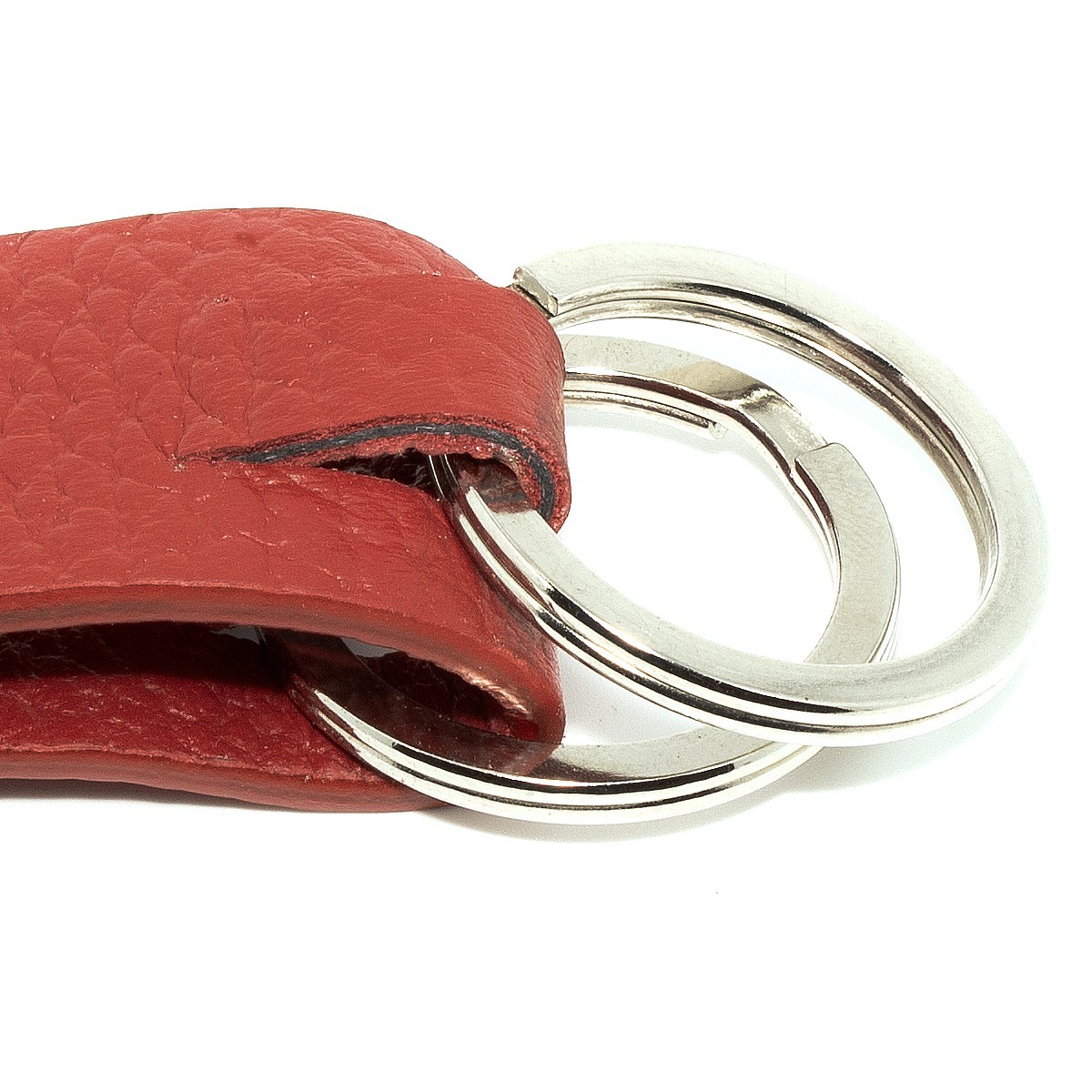Portachiavi unisex colore rosso con moschettone e 2 anelli blisè da 30mm dando la possibilità di avere un portachiavi multiuso, infatti grazie ai 2 anelli in dotazione oltre ad avere la possibilità di inserire più chiavi, possiamo anche inserire pendoli, gadget e tanto altro.