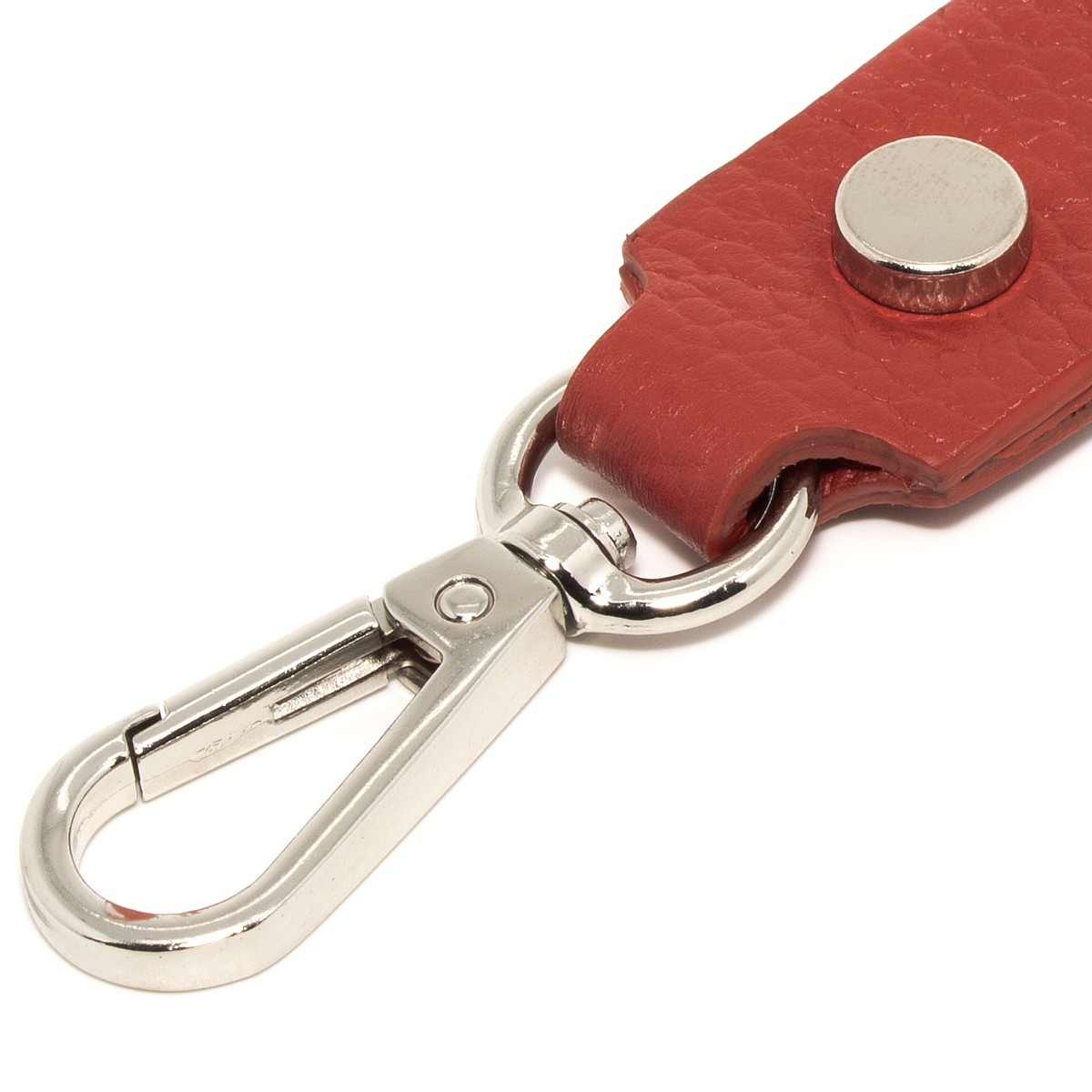 Portachiavi unisex colore rosso con moschettone e 2 anelli blisè da 30mm dando la possibilità di avere un portachiavi multiuso, infatti grazie ai 2 anelli in dotazione oltre ad avere la possibilità di inserire più chiavi, possiamo anche inserire pendoli, gadget e tanto altro.