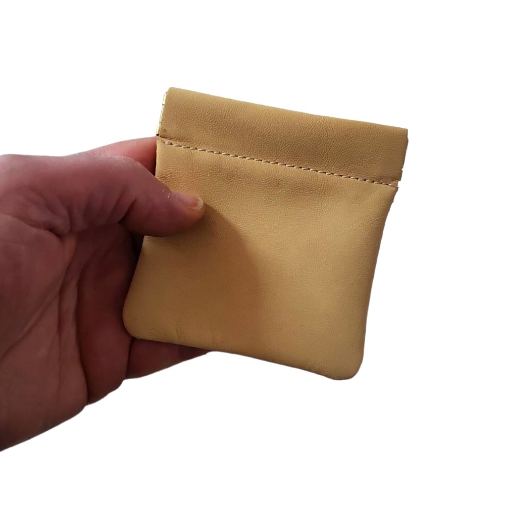 Elegante portamonete PAC PAC in vera pelle di colore Crema con chiusura a molla snap.
