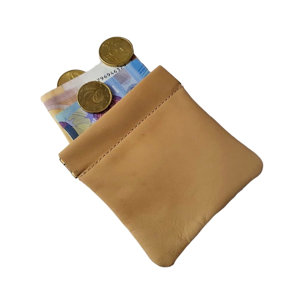 Elegante portamonete PAC PAC in vera pelle di colore Crema con chiusura a molla snap.