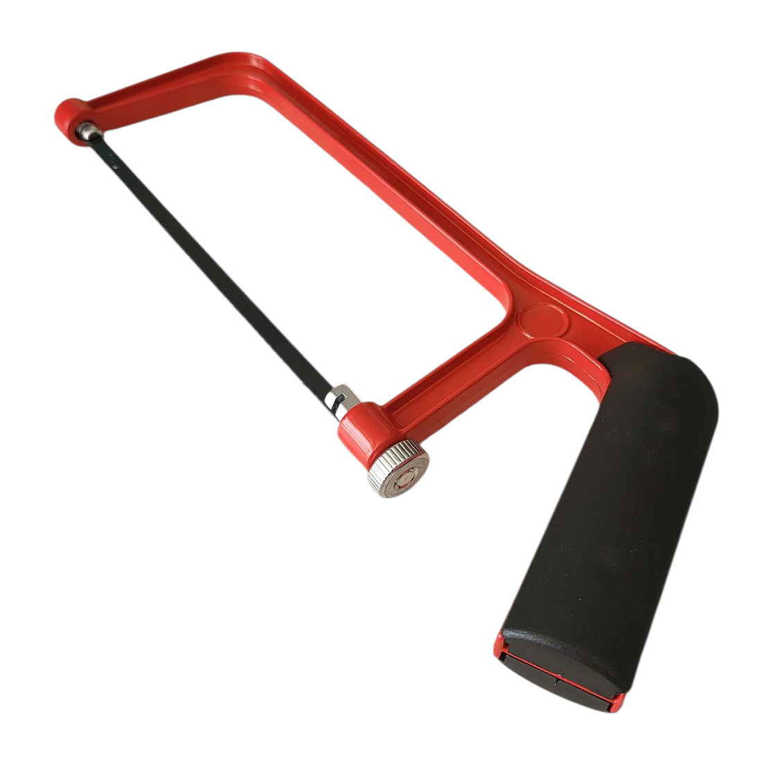 Il seghetto è dotato di una pratica rotella di serraggio che, svitata, allenta la lama per permetterne la sostituzione facile e veloce; una volta inserita la nuova lama, basta avvitare la rotella per bloccarla saldamente in posizione.