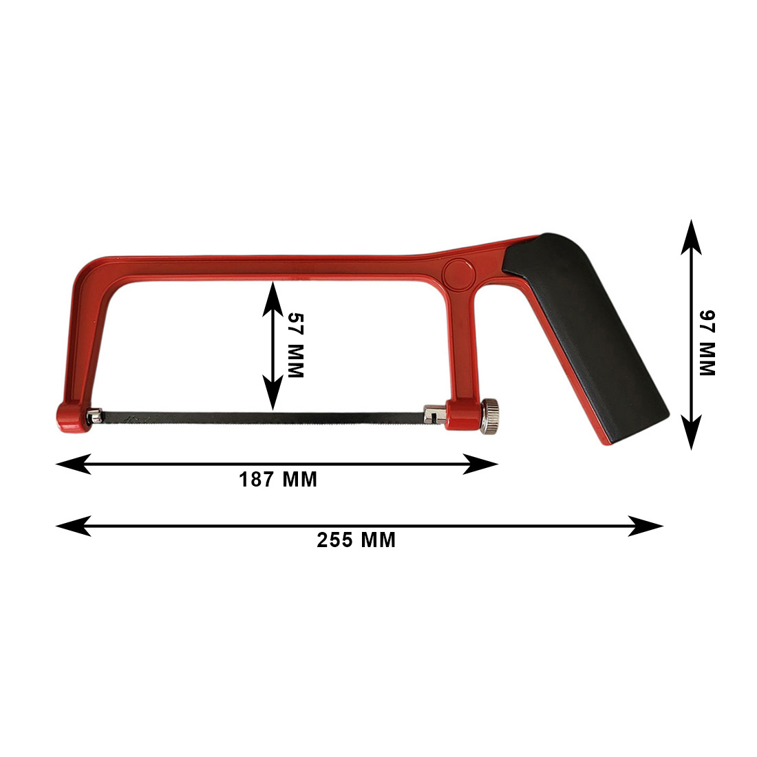 Il corpo del segaccio misura 255 mm di lunghezza e 97 mm di altezza, con uno spazio interno di 57 mm.