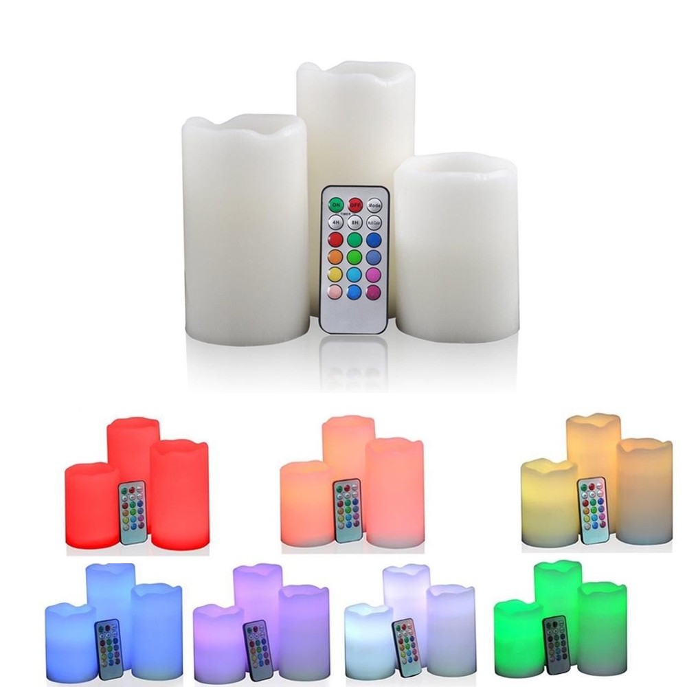 Set 3 candele a led effetto vera cera luce rgb con telecomando.
