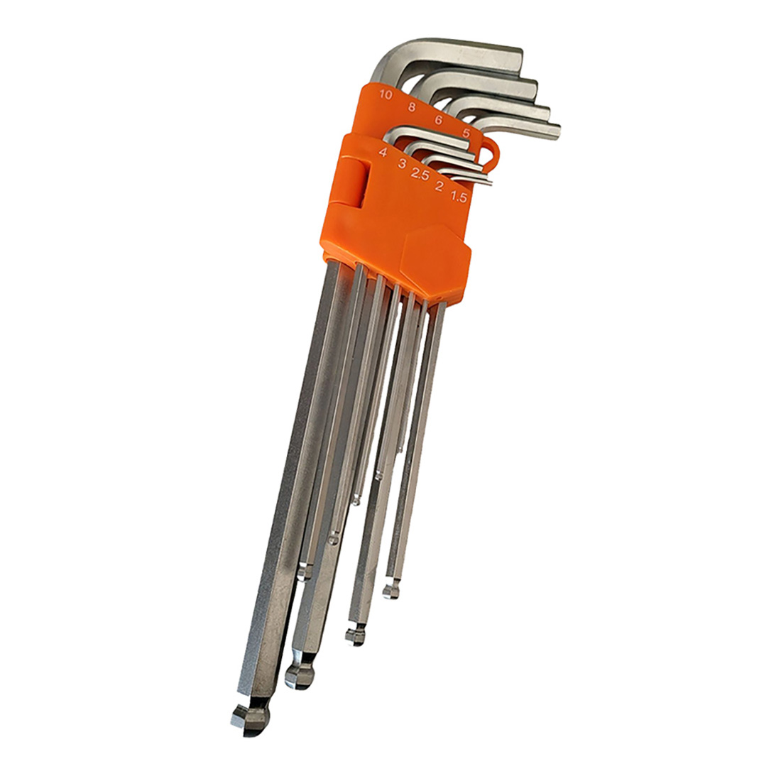 Set di 9 Chiavi Esagonali Brugola con Profilo a L in Acciaio Chromo Vanadium.