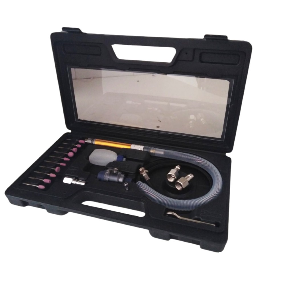 Set Mini smerigliatrice pneumatica ad aria compressa con accessori.