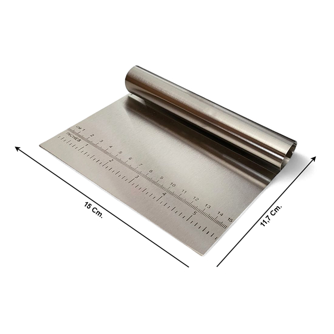 Con dimensioni di 15 x 11,7 cm, questa spatola è comoda da maneggiare e perfetta per utilizzarla come tagliapasta, come stecca per stendere l'impasto in modo uniforme e come raschietto per facilitare la lavorazione delle tue preparazioni.