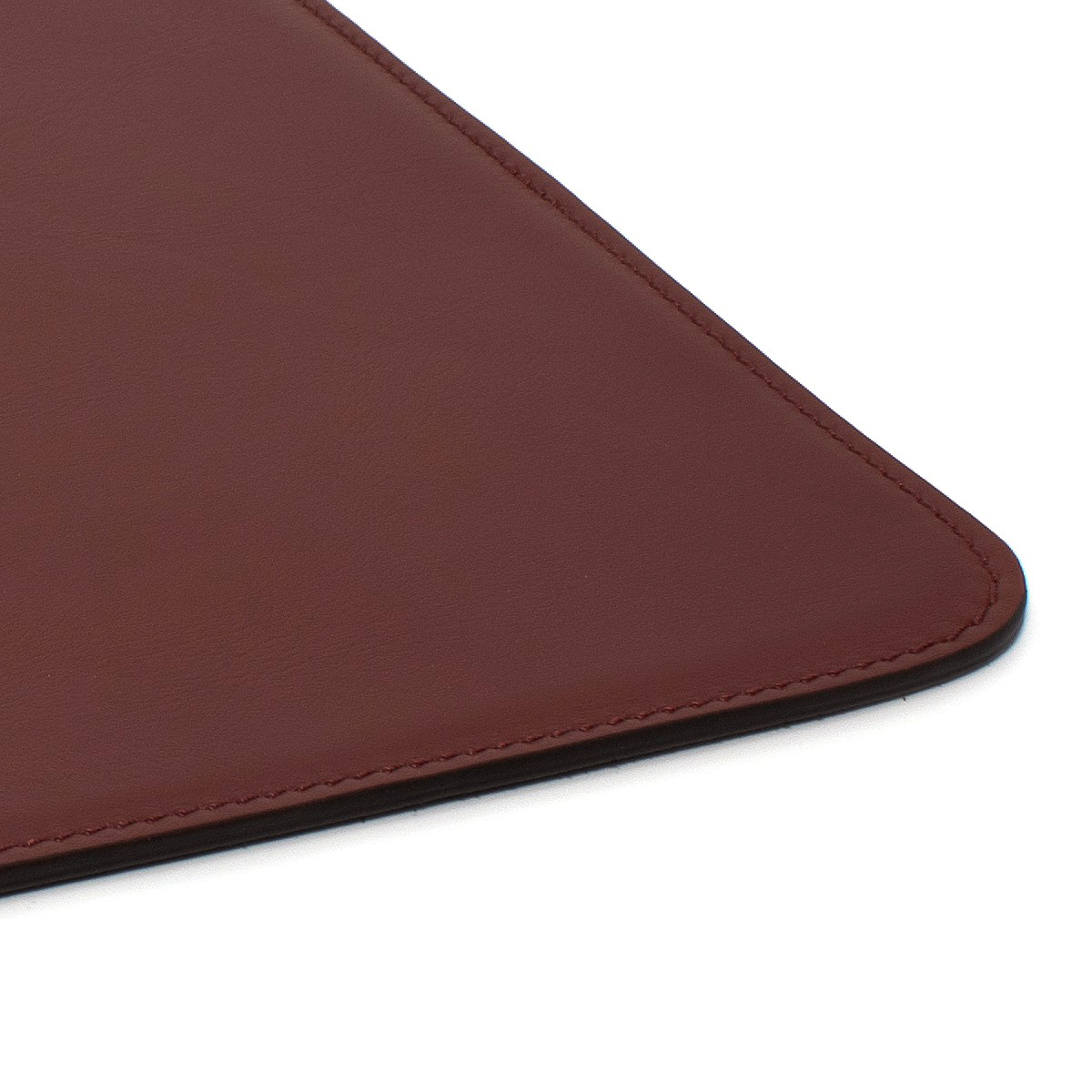 Realizzato 100% in vera pelle sul lato superiore, mentre il lato sottostante è realizzato con sintetico scamosciato per avere una buona presa sul piano su cui lo appoggiamo, rifinito e cucito a colore con bordi tinti con vernici specifiche per i pellami.