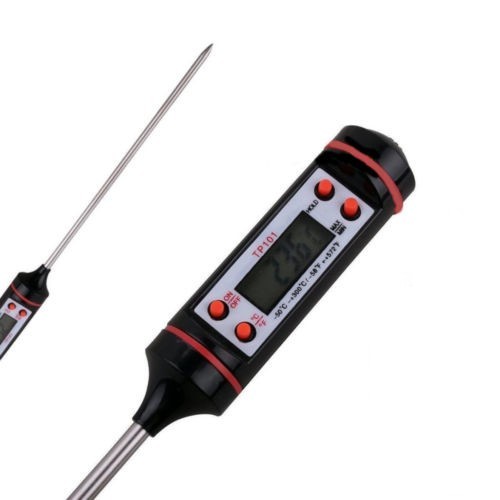 Questo termometro ha un piccolo display digitale LCD con una sonda in acciaio inox, ed è utilissimo per conoscere la temperatura esatta degli alimenti sia cotti che congelati.